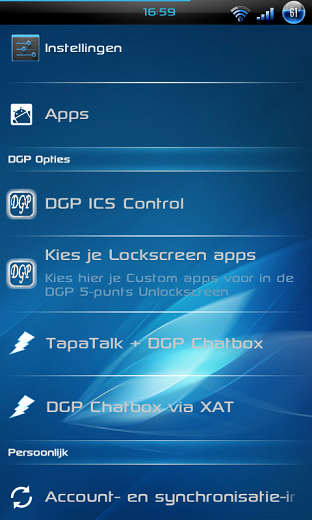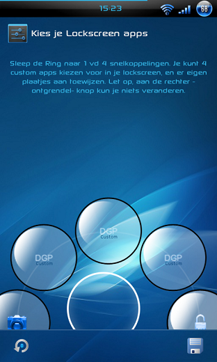 Screenie 2 is het settingsmenu om de lockscreen apps te kiezen voor DGP 5