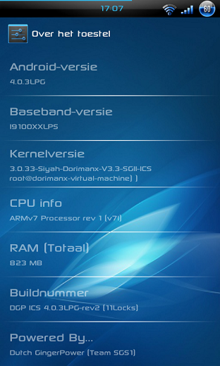 Screenie 4 Settingsmenu zoals op de S3 met CPU en RAM Gegevens.